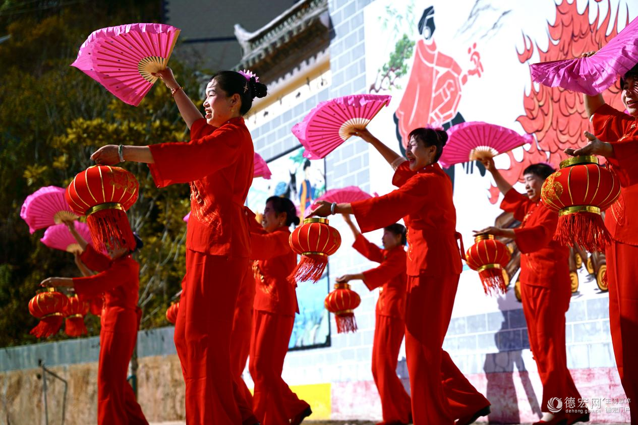 云视网讯(记者:歹丽娟 邱黾勉)朗朗上口的唱词,热闹的锣鼓声,红红火火的演出服,整齐划一的舞步以及洋溢着灿烂笑容的演员,这是姚安县“梅葛宣讲团”为迎接采访团一行特意准备的花灯表演。