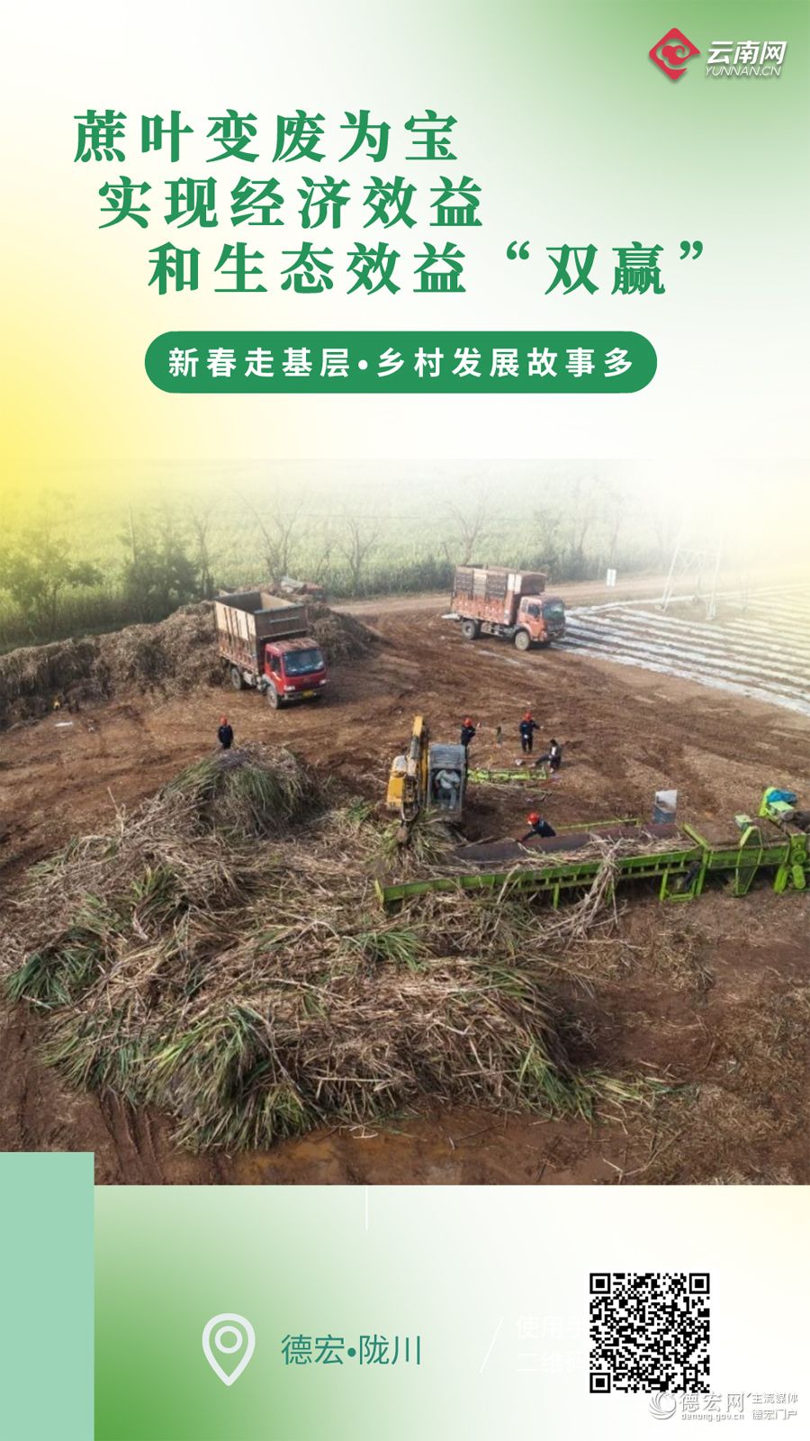 在德宏傣族景颇族自治州陇川县景罕镇的甘蔗地里,工人正驾驶着机器来回奔忙,专门给甘蔗叶打包。为提高秸秆综合利用率,2023年陇川县引进分步式甘蔗收获机20台。通过机器处理后,蔗叶可以加工成饲料、肥料、燃料,蔗农也无需再进行蔗叶焚烧。将甘蔗叶进行循环再利用,既提升经济效益,也解决甘蔗叶焚烧带来的环境问题,还给农户带来增收,可谓一举多得,实现经济效益和生态效益“双赢”。
