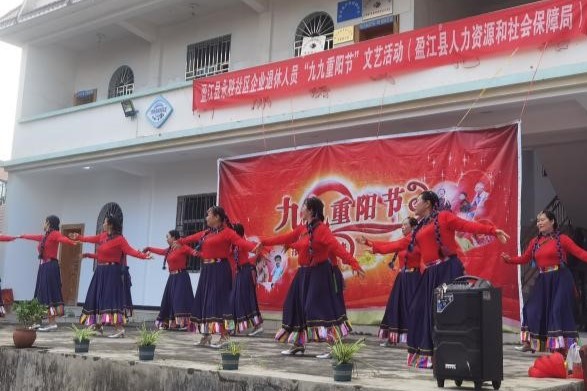 活动中,各单位以案释法的方式进行了基本养老保险政策、防养老诈骗、交通安全法规等宣传。工作人员耐心解答老人们的各种疑问,为他们送上牛奶、保温杯等慰问品。同时,社区医护人员还为老人们提供了免费的身体健康检查。活动在精彩的文艺表演中正式拉开帷幕,傣族乐曲《月光下的凤尾竹》、藏族舞蹈《康定情歌》……一曲曲悠扬的民族乐曲,一支支欢快的民族舞蹈,将现场的气氛推向了高潮。身着民族服饰的老人,用自己的舞姿讲述着民族的故事,传递着永远听党话、感党恩、跟党走的坚定信念。此次重阳节活动共在6个社区分别举行,丰富多彩的活动形式和内容,为各个社区的老年居民送上了关怀与欢乐。下一步,盈江县人社局将继续携手社区,为社区居民提供更加贴心、优质的服务,不断提升服务对象的获得感、幸福感。通讯员:何忠格 赵孝宇